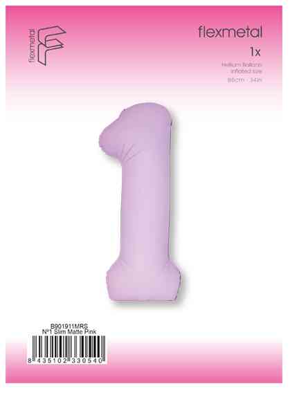 Шар фольга Цифра 40"Fm Slim Светло-розовый Матовый "1" (упак)