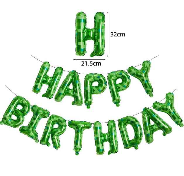 Шар фольга Буквы надпись Happy Birthday Пиксели Зеленый 16" 41смFL
