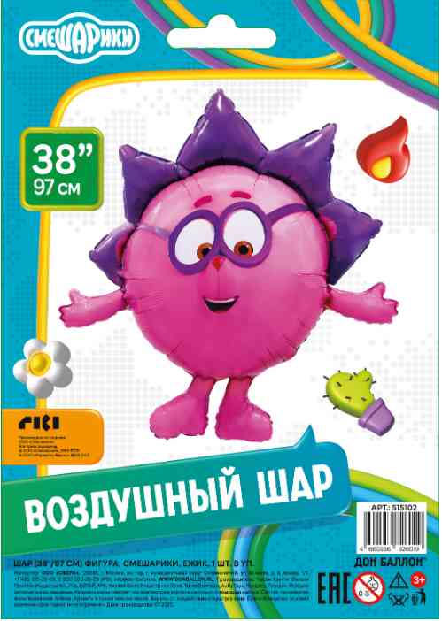 Шар фольга фигура Смешарики Ежик 38" 97см FL (упак)