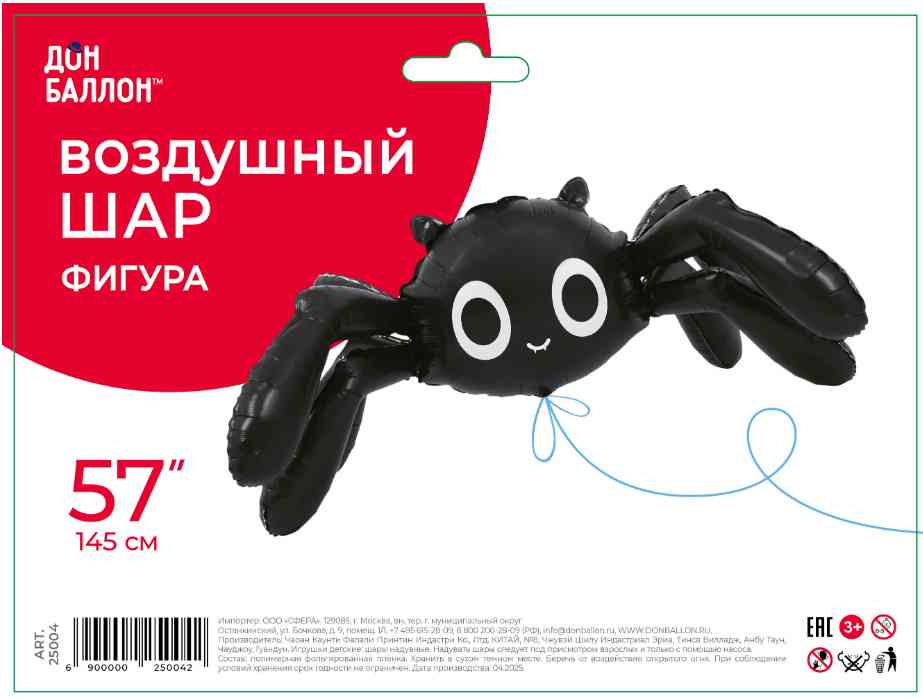 Шар фольга фигура AIR Паук Черный Сатин 57" 145смFL (упак)