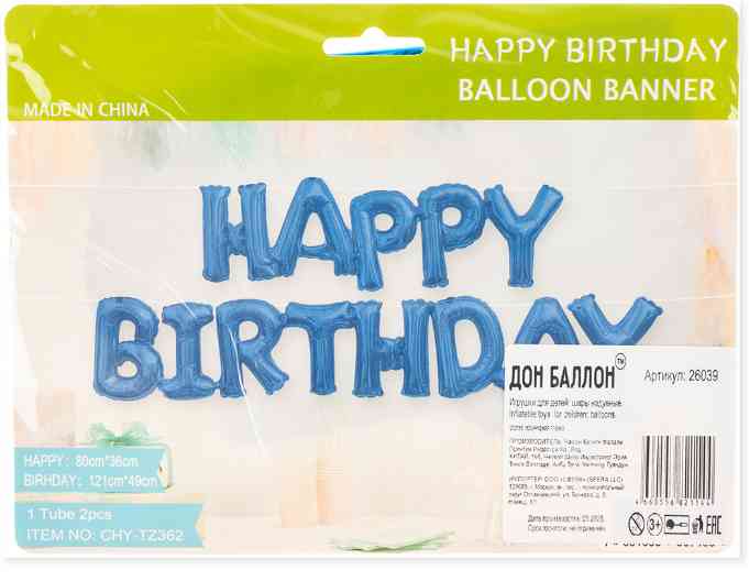Шар фольга Буквы надпись Happy Birthday Синий 17" 43смFL