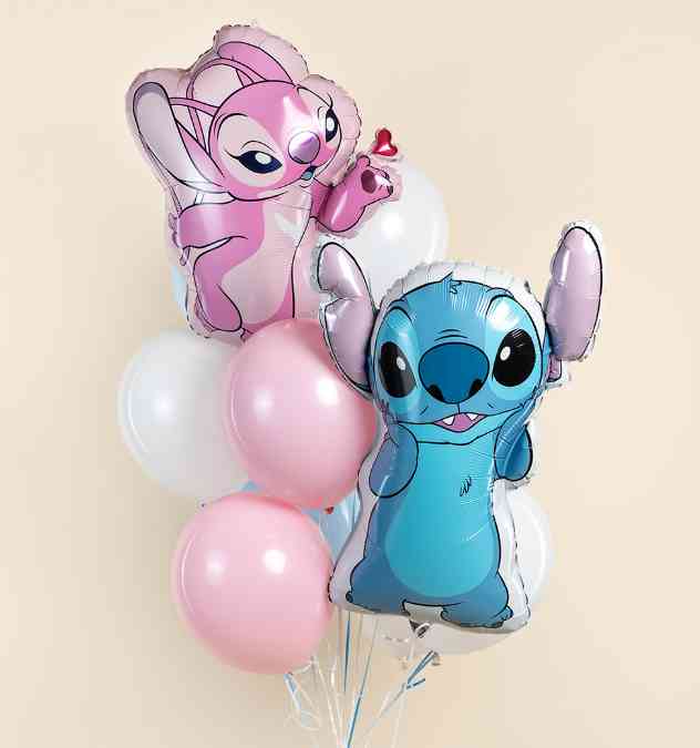 Шар фольга фигура Любимый монстрик Стич с сердечком Розовый 26" 66см FL (упак)
