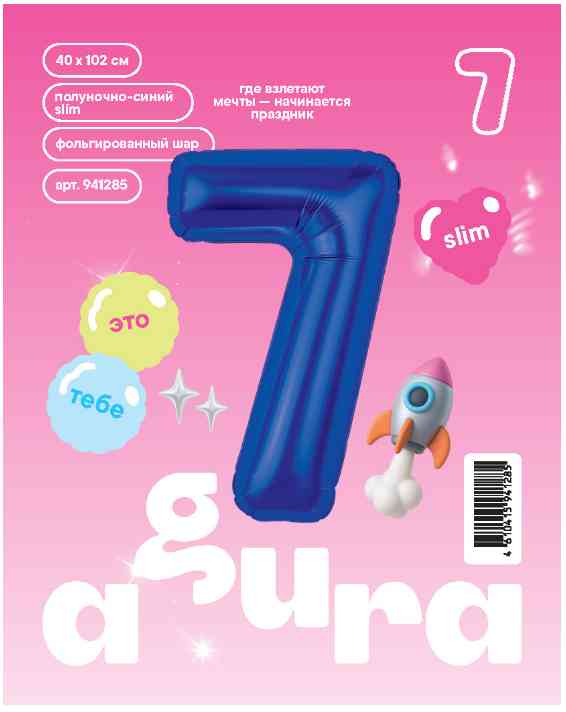 Шар фольга Цифра 40" AG Slim Полуночно-синий "7" (упак)