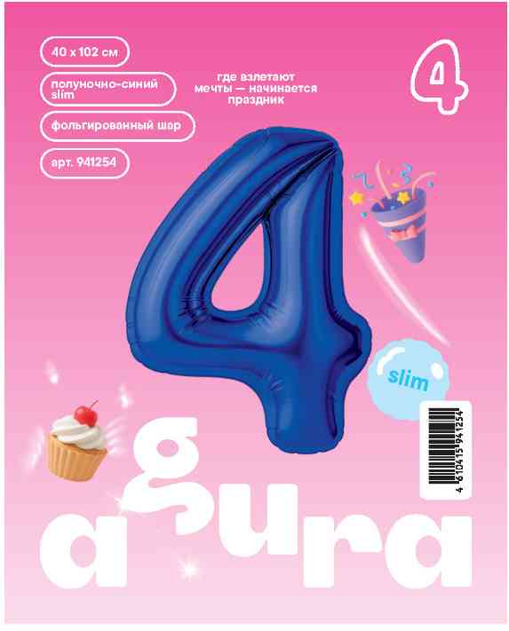 Шар фольга Цифра 40" AG Slim Полуночно-синий "4" (упак)