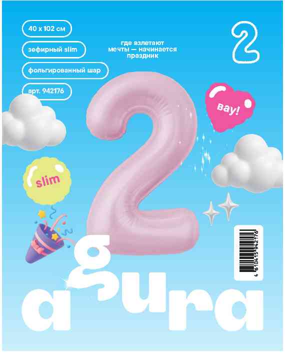 Шар фольга Цифра 40" AG Slim Зефирный "2" (упак)