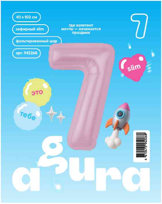 Шар фольга Цифра 40"AG Slim Зефирный "7" (упак)