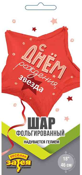 Воздушный фольгированный шар в форме звезды и символичным текстом «С днём рождения, звезда». Смотрится красиво как самостоятельно, так и в качестве дополнения к фонтану из воздушных шаров. Поставляется в ненадутом состоянии. Для того, чтобы шар летал, рекомендуем надувать его гелием. Для удобства работы шар снабжен самозакрывающимся клапаном. Надутый гелием шар летает от двух дней. Внимание! Цветовой оттенок шара в действительности может отличаться от представленного на фотографии в зависимости от настроек Вашего монитора.