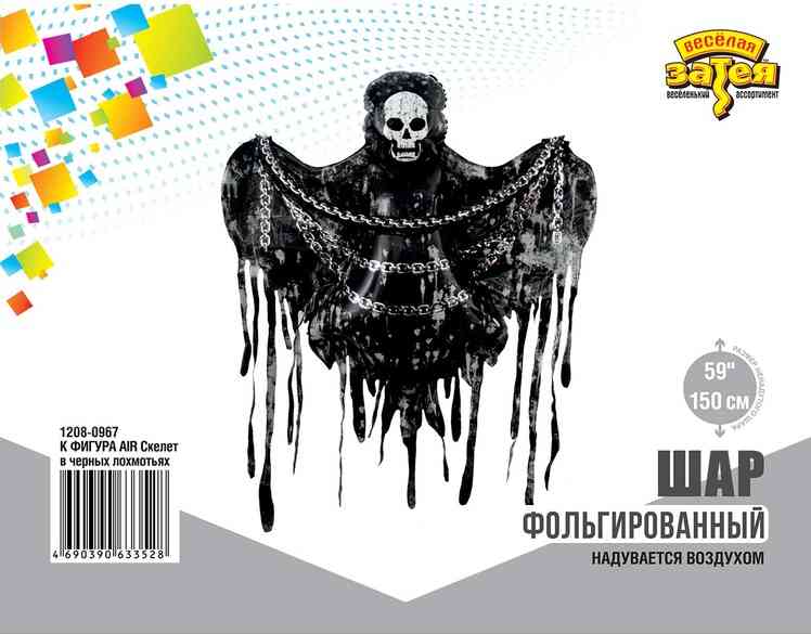 Шар фольга фигура AIR Скелет в черных лохмотьях 59" 150смFL (упак)