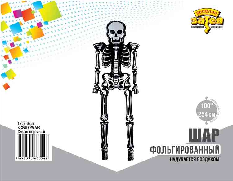 Шар фольга фигура AIR Скелет огромный 100" 254смFL (упак)