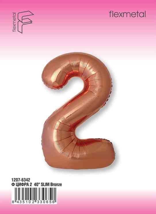 Шар фольга Цифра 40"Fm Slim Бронзовый Bronze "2" (упак)