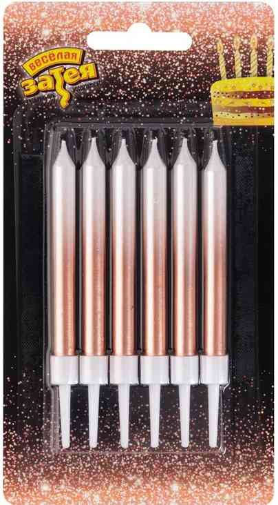 Свечи для торта 8 см, 6 шт. Градиент перламутровый белый розовое золото