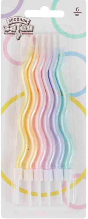 Свечи для торта 12 см, 6 шт. Волна пастель перламутровая
