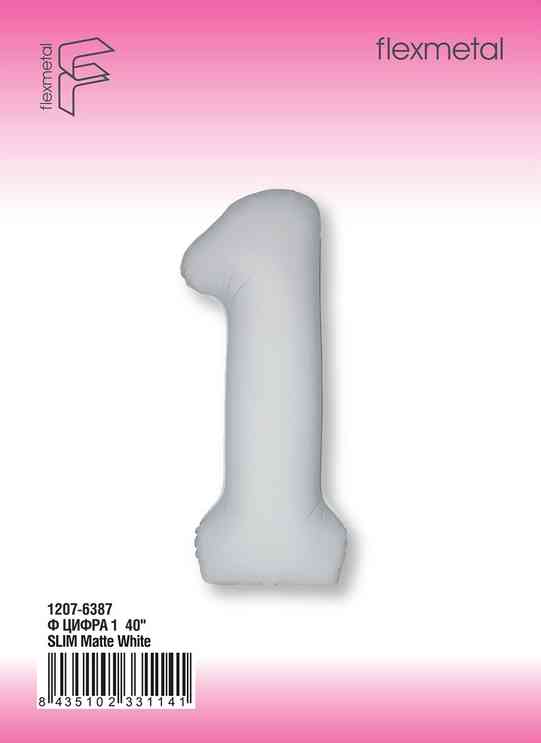 Шар фольга Цифра 40" Fm Slim Белый Матовый Matte White цвет "1" (упак)