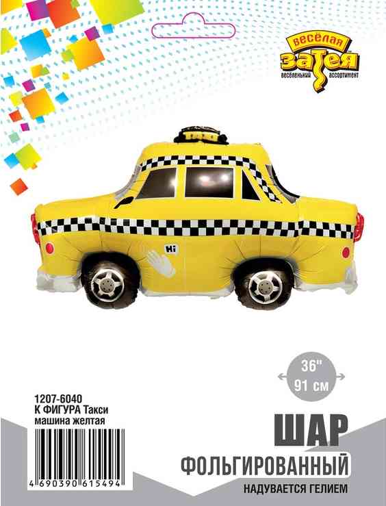 Шар фольга фигура Такси машина желтая 36" 91см ВЗ (упак)