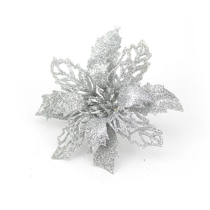 Цветы искусственные Пуансеттия глиттер мини Серебро 11см набор (уп3)