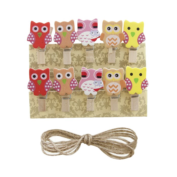 Украшение декор Прищепки Совушки 3,5см разноцветный (уп10) ВВ