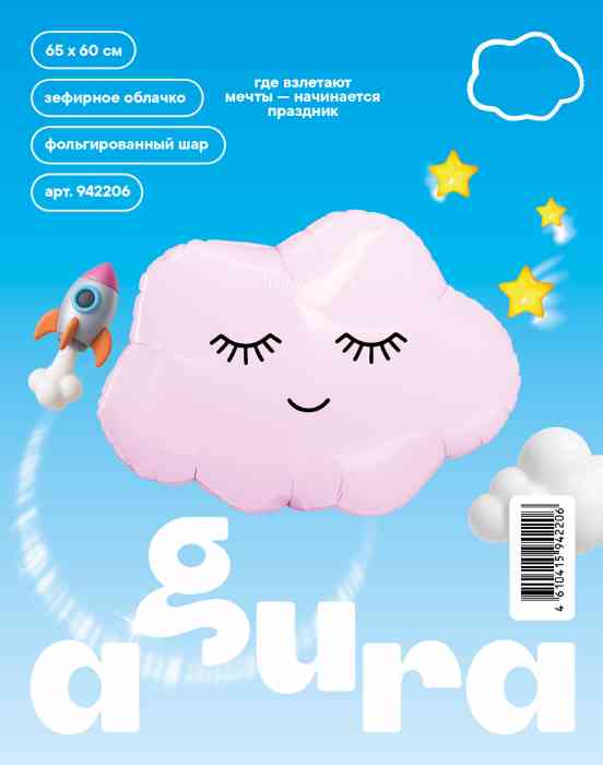 Шар фольга фигура Облако розовое 26" 66смAG 1207-6607 (упак)