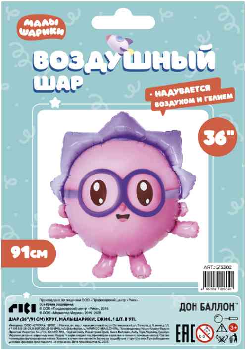 Шар фольга фигура Малышарики Ежик 36" 91смFL (упак)