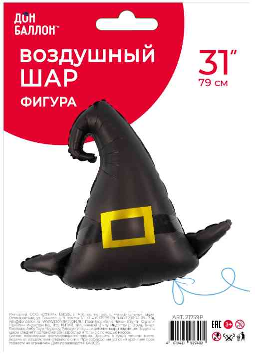 Шар фольга фигура Шляпа Волшебника Черный 31" 79см FL (упак)