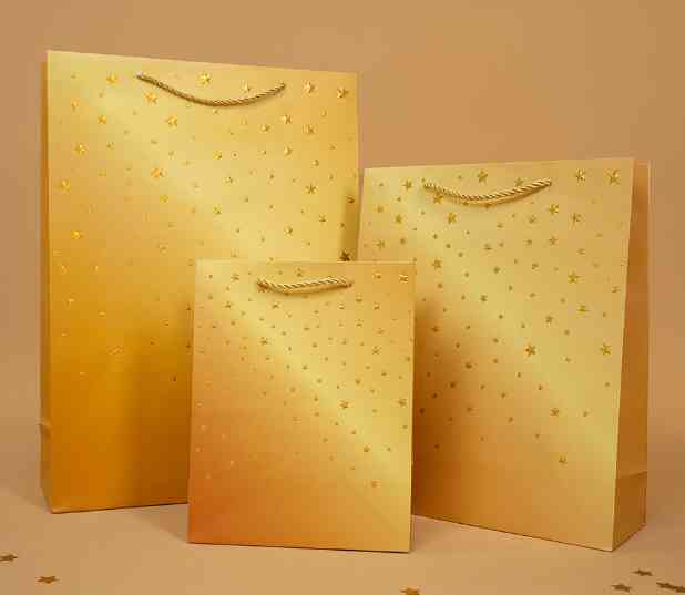 Пакет бумажный M 18х23см Звездное сияние Дизайн №4 Золото Металлик