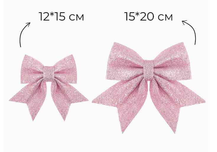 Декоративное украшение бант Праздничный Розовый с блестками 12х15см (уп2) ВВ