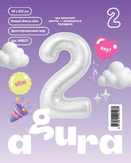 Шар фольга Цифра 40"AG Slim Белый блеск "2" (упак)