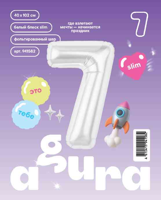 Шар фольга Цифра 40"AG Slim Белый блеск "7" (упак)