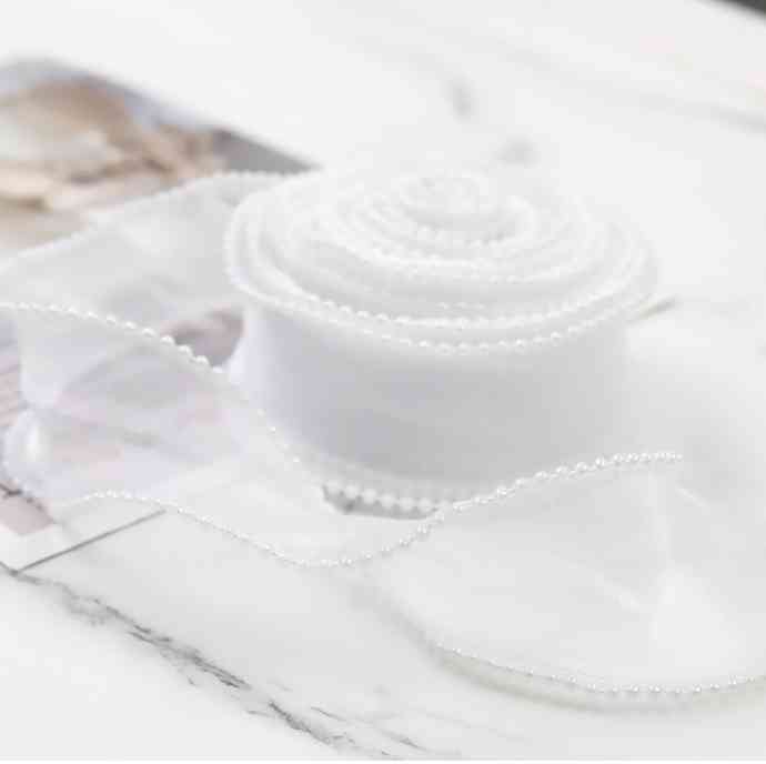 Лента Органза с леской и бусинами 4х4,57м Белый
