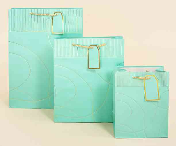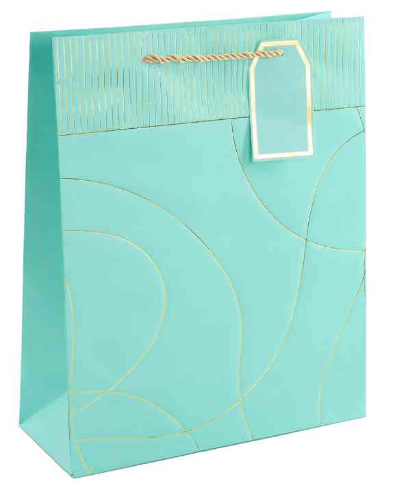 Пакет бумажный L 26х32см Тонкие линии Дизайн №4 Бирюзовый Металлик