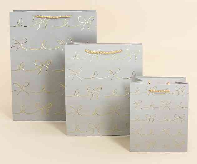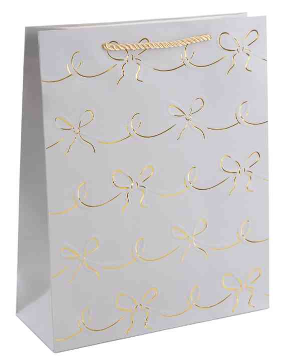Пакет бумажный L 26х32см Милые бантики Дизайн №1 Серебро Металлик