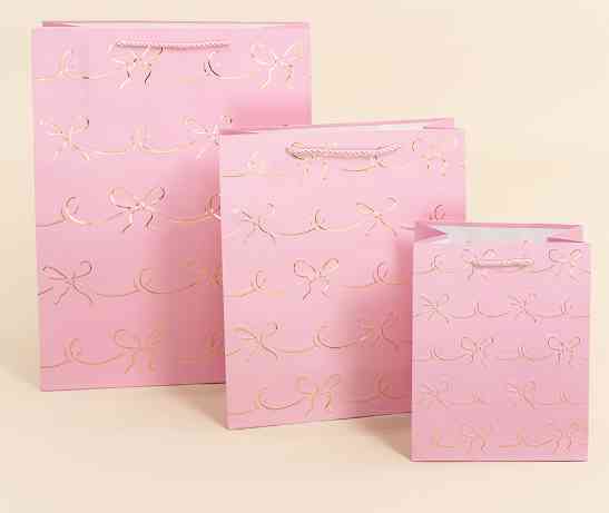Пакет бумажный XL 31х41см Милые бантики Дизайн №3 Розовый Металлик