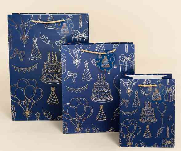 Пакет бумажный M 18х23см Праздничный Дизайн №3 Синий Металлик
