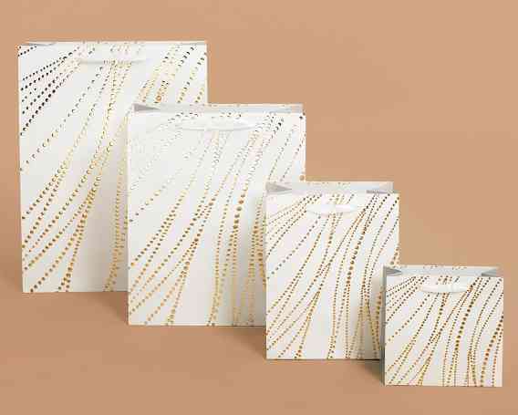 Пакет бумажный XL 31х41см Золотые нити Дизайн №2 Белый Металлик