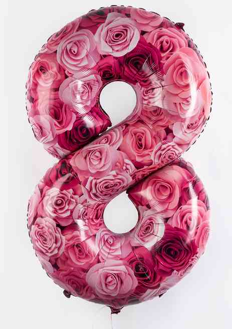 Шар фольга Цифра 34"FL Симфония роз Фуше "8" (упак)