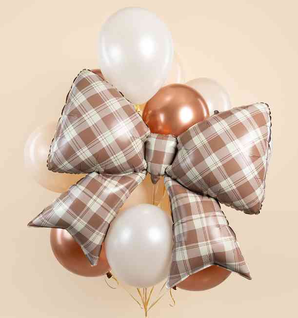 Шар фольга фигура Бант Клетка Виши Бежевый Сатин 38" 97см FL (упак)