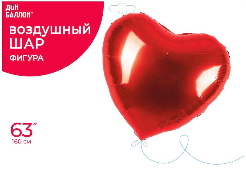 Шар фольга без рисунка 63" FL сердце Металлик Красный