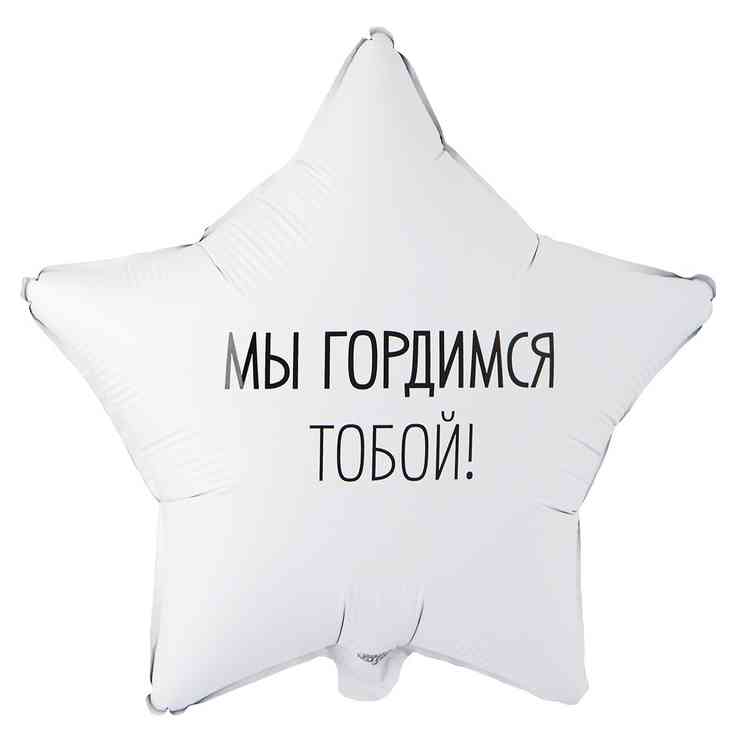 Фольгированный шар размером 18"/ 46см в форме звезды с оригинальным текстовым дизайном – с одной строны надпись "Поздравляем ты это сделал", с другой стороны шара надпись "Мы гордимся тобой". Такой шар - это отличный способ порадовать друга, сына, брата, коллегу, мужа, папу, дедушку и поздравить с каким-либо достижением. Такой подарок создаст атмосферу праздника и веселья, а также станет интересным акцентом для фотозоны, предоставляя возможность всем участникам сделать креативные и яркие фотографии. Шар изготовлен из качественных материалов (полимерная фольгированная пленка). Шар имеет встроенный клапан, что упрощает надувание. Для надува рекомендуется использовать гелий. Поставляется в красочной упаковке с цветным изображением шара, благодаря чему можно выставлять товар в ненадутом виде. Внимание! Реальный цвет товара может незначительно отличаться от представленного на фотографии в зависимости от настроек вашего монитора.