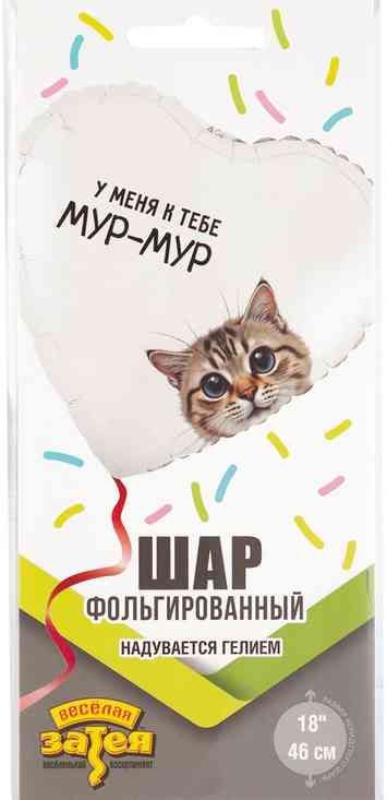 Воздушный фольгированный шар в форме сердца с изображением котёнка и символичным текстом «У меня к тебе мур-мур». Шар-признание в чувствах, когда ещё нет смелости сказать «Я тебя люблю». Шарик смотрится красиво как самостоятельно, так и в качестве дополнения к фонтану из воздушных шаров. Поставляется в ненадутом состоянии. Для того, чтобы шар летал, рекомендуем надувать его гелием. Для удобства работы шар снабжен самозакрывающимся клапаном. Надутый гелием шар летает от двух дней. Внимание! Цветовой оттенок шара в действительности может отличаться от представленного на фотографии в зависимости от настроек Вашего монитора.