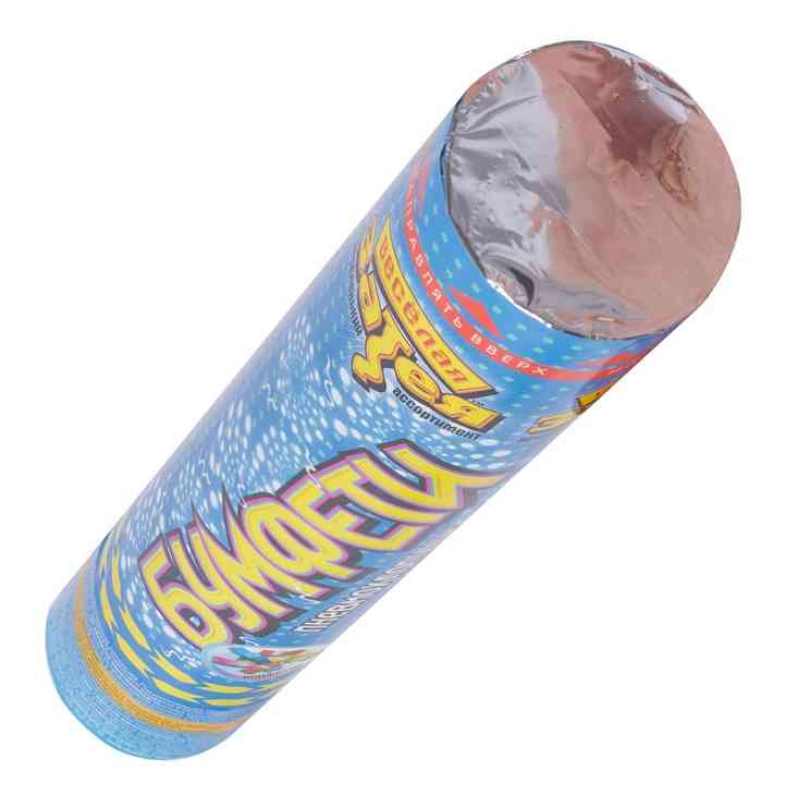 Пневматическое устройство, аналог хлопушки, абсолютно безопасное, предназначено для использования в помещении и на улице, дальность выстрела 6-8 м. Корпус хлопушки состоит из двух частей: пневматического баллона со сжатым воздухом и картонного цилиндра с наполнителем. Баллон изготовлен из металла, надежен и безопасен при хранении и в использовании, обладает высокой прочностью, чтобы выдержать давление воздуха. Выстреливает круглым разноцветным фольгированным конфетти.