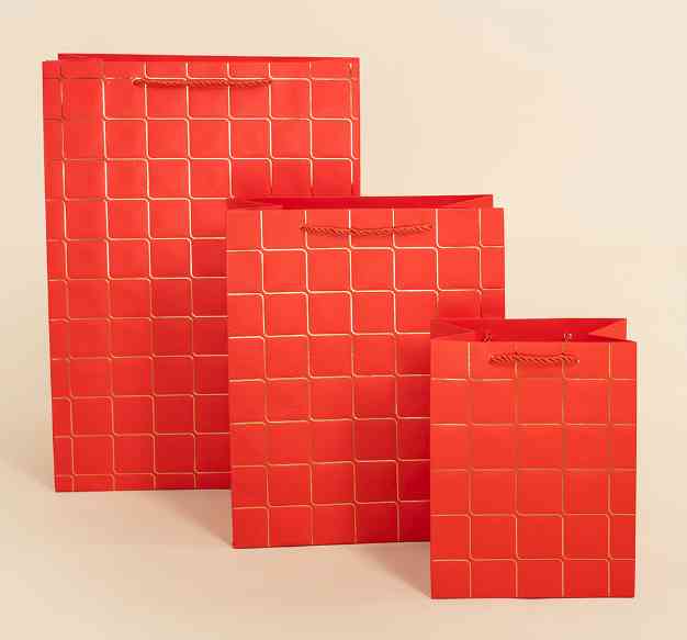 Пакет бумажный L 26х32см Золотые квадраты Дизайн №2 Красный