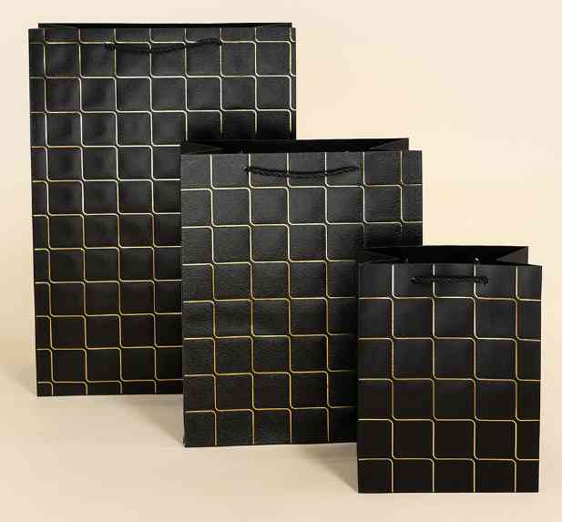 Пакет бумажный L 26х32см Золотые квадраты Дизайн №1 Черный