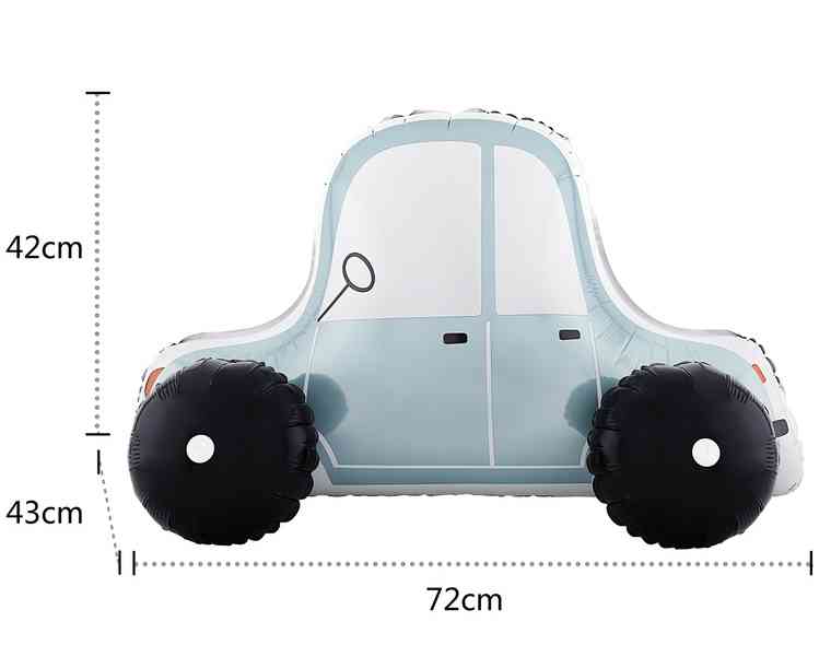 Объемная фольгированная фигура в форме машинки, наполняется воздухом. Шар-фигура состоит из пяти элементов: кузов+пара передних колес+пара задних колес. Каждая часть шара имеет пластиковые кнопки- шарниры со встроенным клапаном. Перед надувом шара мелкие детали необходимо присоединить к основной части с помощью этих кнопок, а затем надуть при помощи ручного насоса через клапан, встроенный в основную часть шара. В комплекте поставляется трубочка, которую можно использовать для надува шарика. Выполнен из качественных материалов, что позволяет шару держать форму несколько недель. Благодаря хитрым креплениям детали шара могут поворачиваться на 360 градусов и принимать различные положения. Упакован в красочный пакет, с цветным изображением шара, благодаря чему можно выставлять товар в не надутом виде. Размеры шара: высота 42см, ширина 43см, длина 72см.