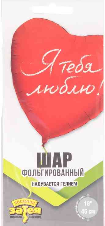 Воздушный фольгированный шар в форме сердца красного цвета и с пылким признанием «Я тебя люблю!». Смотрится красиво как самостоятельно, так и в качестве дополнения к фонтану из воздушных шаров. Поставляется в ненадутом состоянии. Походит для надува как воздухом, так и гелием. Для удобства работы шар снабжен самозакрывающихся клапаном. Надутый гелием шар летает от двух дней. Внимание! Цветовой оттенок шара в действительности может отличаться от представленного на фотографии в зависимости от настроек Вашего монитора. Размер шара: в ненадутом виде – 18’’/46см, в надутом виде – 13’’/32см.