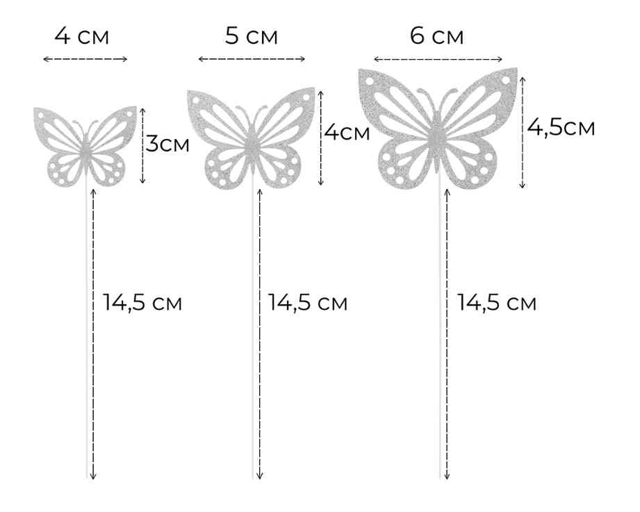 Размер бабочек: 6*4,5; 5*4; 4*3 см.