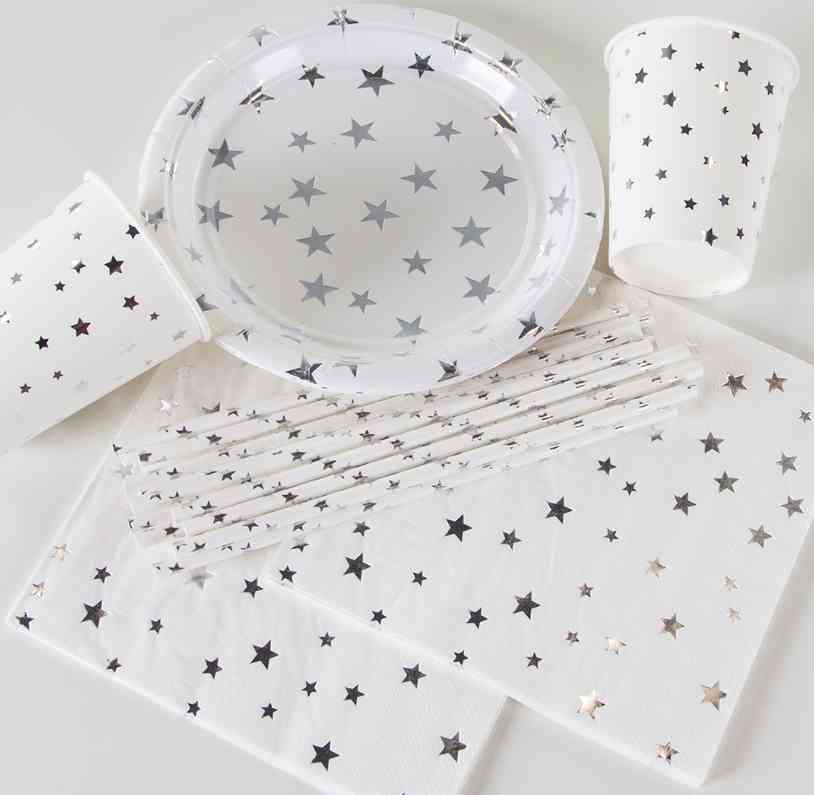 Салфетки бумажные 33х33см Серебристые звезды Белый Серебро Металлик (уп12) ВВ