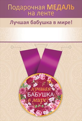 Медаль металлическая малая Лучшая бабушка в мире! Хорошо