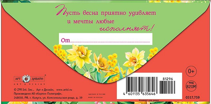 Конверт для денег С Днём 8 Марта