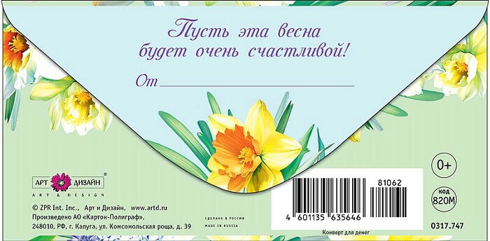 Конверт для денег 8 Марта