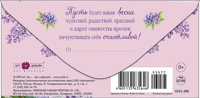Конверт для денег 8 Марта