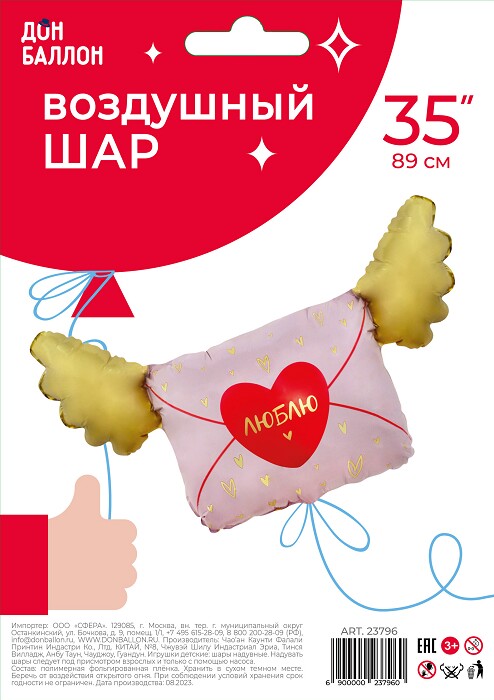Шар фольга фигура Люблю Письмо Валентинка 35'' 89см FL